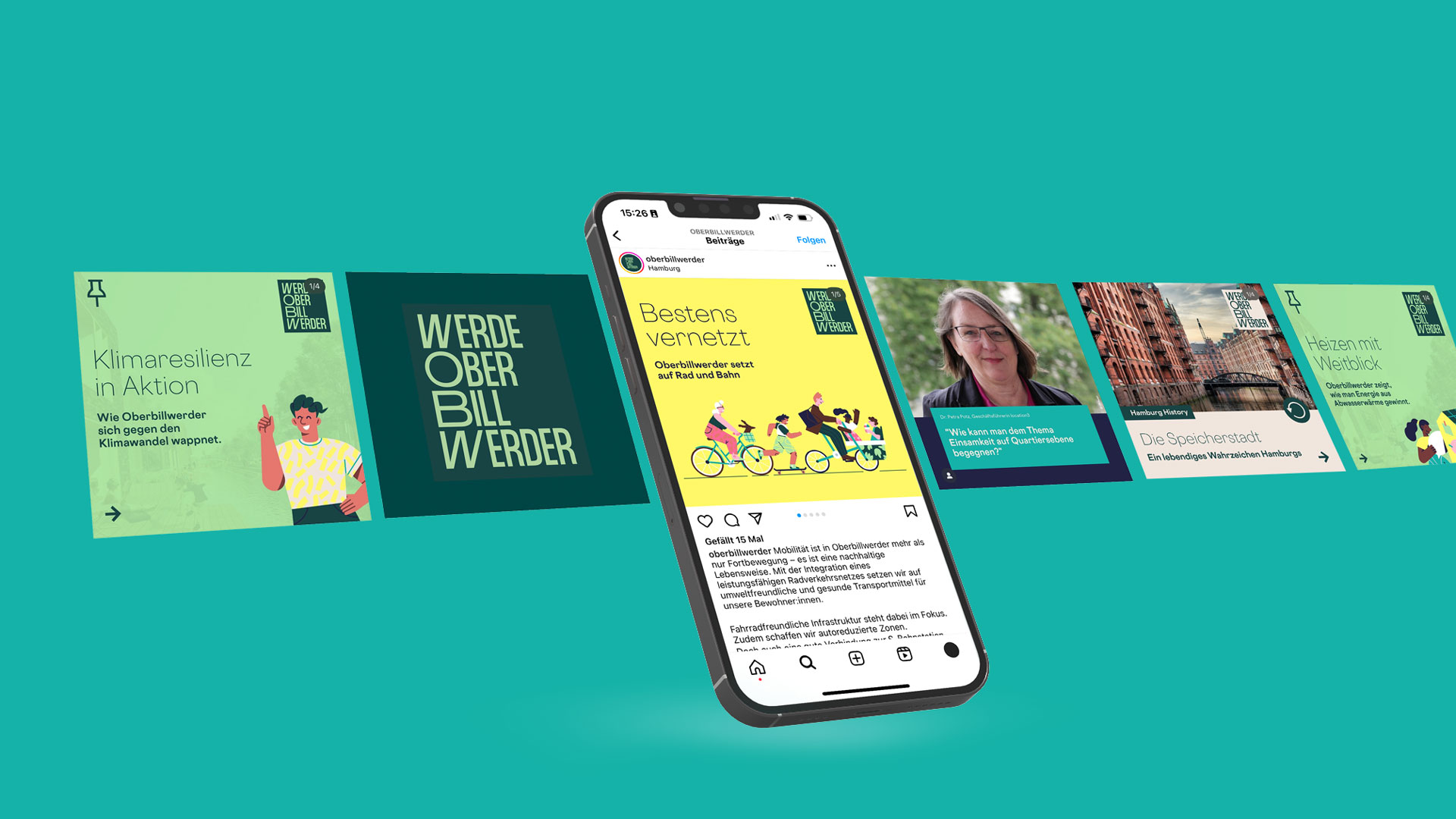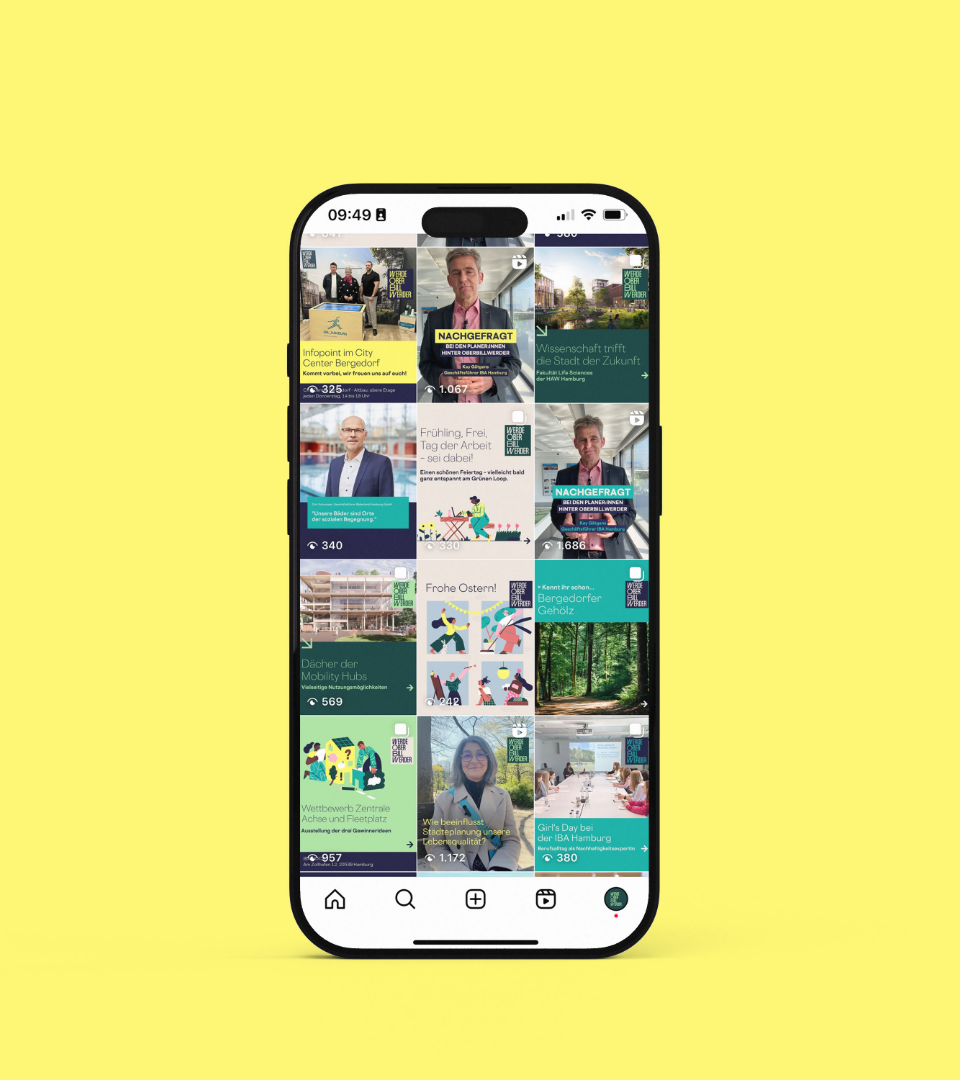 Der neue Stadtteil Oberbillwerder in Hamburg soll als innovativer, nachhaltiger und lebenswerter Stadtteil positioniert und gestalterisch begleitet werden. Ziel war es, ein stimmiges Konzept für Kommunikation und Marketing zu verfolgen, das die Besonderheiten des Quartiers hervorhebt und sowohl lokale als auch nationale Zielgruppen anspricht.